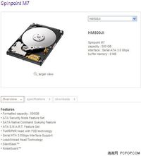 ????[泡泡網(wǎng)硬盤頻道4月23日]?三星近期宣布發(fā)售Spinpoint系列的M7規(guī)格2.5英寸硬盤,此系列產(chǎn)品從三碟裝改為雙碟裝,單碟容量提高到250GB。其中容量包括250GB、320GB、400GB、500GB等。 ??? Spinpoint M7其中500GB版型號為HM500JI,采用SATA 3Gbps接口,5400rpm,8MB緩存,平均尋道時間12ms,平均延遲5.6ms,最