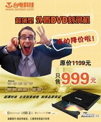 ??? [泡泡網(wǎng) 8月25日訊]:隨著暑假即將結(jié)束,9月開學的日子又快到了,新的裝機高峰又要到了。在這個暑假里的不斷升溫的DVD刻錄機市場,不少品牌內(nèi)置機型價格都降到了299這一冰點價位,而外置DVD刻錄機的價格都還高高在上,特別是超薄型的外置DVD刻錄機,全都在千元以上,讓許多人望而卻步。??? 近日,臺電外置超薄全兼8X DVD刻錄機直降200元,下調(diào)至999元超值價為,成為首款千元以下的外置