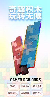 影馳首款DDR5內(nèi)存——GAMER RGB DDR5,上周已經(jīng)揭開(kāi)了神秘面紗,以俄羅斯方塊游戲和積木作為設(shè)計(jì)元素的全新外觀,展現(xiàn)出了與眾不同的觀感和趣味十足的游戲感。