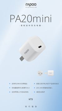 近日,領(lǐng)軍國產(chǎn)外設(shè)品牌,實(shí)力大廠上市企業(yè)Rapoo雷柏,推出了PA20雙口充電器,1個USB-C+1個USB-A雙接口,適用市面主流電子產(chǎn)品;擁有約20W大功率輸出,支持蘋果12、蘋果11等機(jī)型的 PD協(xié)議快充,6重安全防護(hù),上市誠意價僅需69元,遠(yuǎn)遠(yuǎn)低于蘋果原裝充電器的價格,讓你擁有頃刻擁有快充體驗(yàn),時刻能量滿滿。