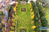新華網(wǎng)上海12月10日電(梁鴻儒) 由于連續(xù)陰雨,上海今年的銀杏泛黃有些姍姍來遲,觀賞銀杏的時(shí)間也相應(yīng)縮短。不過隨著上一輪雨水天氣逐漸停歇,12月初,申城的銀杏葉子變得金黃純粹,成片成列的沖擊著人們的視覺?! 〗?,坐落于上海市中心的上海文化廣場(chǎng),周圍四排銀杏樹樹葉飄滿廣場(chǎng)前草坪,從空中俯瞰,整個(gè)上海文化廣場(chǎng)化身一片“金色海洋”。走進(jìn)這里,整個(gè)人像沉浸在一幅油畫版的夢(mèng)境之中?! ?jù)悉,目前上海