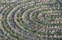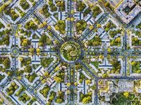英國《每日郵報(bào)》報(bào)道,在一項(xiàng)為期12年的拍攝計(jì)劃中,英國牛津郡攝影師詹森·霍克斯搭乘直升機(jī)拍攝了大量航拍照,展現(xiàn)4個(gè)大陸上的一系列住宅形成的帶有抽象派色彩的圖案。從英國郊區(qū)別具一格的圓形布局住宅到密集度令人吃驚并且?guī)缀跻荒R粯拥南愀酃?,霍克斯的航拍照為我們呈現(xiàn)了一個(gè)既熟悉又感到陌生的世界?! ∮咸乜ゅa廷伯恩的一個(gè)圓形住宅區(qū),建有對(duì)稱三角形花園?! ∧β甯缟衬胁康囊蛔r(nóng)舍,圍欄里住著一