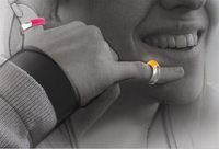 ????泡泡網(wǎng)資訊頻道2月9日?阿根廷的設(shè)計(jì)團(tuán)隊(duì) BCK 最近發(fā)布了一款名為 “色戒(Color Ring)”的概念手機(jī)。顧名思義,這款手機(jī)是由兩個(gè)彩色指環(huán)狀部件組成,分別戴在大拇指和小指上。當(dāng)你比劃 “打電話” 的手勢(shì)(等同于“六” 那個(gè)手勢(shì))時(shí),電話功能便會(huì)被激活。拇指上的指環(huán)為聽筒,而小指上的指環(huán)為聲音接收器。 Color Ring概念手機(jī)(圖片來自互聯(lián)網(wǎng)) ??? 沒錯(cuò),