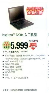 項歐 · 2005-03-09 00:30 - 國際大廠最低價:戴爾5999本本將登場