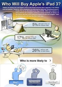 ????泡泡網(wǎng)平板電腦頻道2月24日?近日,在美國(guó)一家網(wǎng)購(gòu)信息聚合平臺(tái)網(wǎng)站,對(duì)于購(gòu)買(mǎi)iPad3所做出的一項(xiàng)最新的調(diào)查報(bào)告中顯示,美國(guó)消費(fèi)者約有50%將會(huì)考慮購(gòu)買(mǎi)這款全新的平板電腦產(chǎn)品。該調(diào)查共向1305名用戶(hù)征求了意見(jiàn),其中48%的用戶(hù)表示會(huì)購(gòu)買(mǎi)iPad3。而在表示會(huì)購(gòu)買(mǎi)iPad3的人群當(dāng)中,有相當(dāng)一部分用戶(hù)已經(jīng)購(gòu)入了亞馬遜Kindle Fire產(chǎn)品。 被調(diào)查人群擁有iPad系列產(chǎn)品