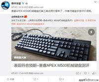 ????APEX M500是賽睿繼經(jīng)典產(chǎn)品6G V2后再次推出的采用Cherry MX紅軸的機(jī)械鍵盤產(chǎn)品,在我們PCPOP評測室的評測文章中,編輯就給出了做工精致扎實(shí)、設(shè)計(jì)合理、手感超贊的評價。隨后我們的官方微博硬件學(xué)堂牽頭組織了這款產(chǎn)品的試用活動,共計(jì)五個幸運(yùn)的朋友獲得了試用資格,接下來讓我們一起來看看網(wǎng)友們都怎么說。微博網(wǎng)友“加裝是大神”的試用文章:《表現(xiàn)符合預(yù)期--賽睿APEX M500機(jī)械