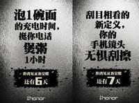 ? ?月底是個(gè)大日子,兩家手機(jī)廠商在發(fā)布新機(jī)之前的預(yù)熱階段就已經(jīng)較上勁了,微博依然是主戰(zhàn)場。? ? 華為榮耀官方微博放出“泡一碗面的充電時(shí)間,挺你電話煲粥1小時(shí)!距離2015榮耀年度旗艦#榮耀7發(fā)布會#還有6天,邀您一起見證有點(diǎn)不同!”的宣傳口號。暗示即將在6月30日發(fā)布的榮耀7將會使用快充技術(shù)。也就是說,據(jù)目前得到的信息,華為榮耀7不僅配備指紋識別功能,它還擁有藍(lán)寶石鏡頭,支持快速充電。? ??