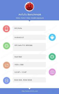 在10月末魅族舉辦了第一場真正意義上的演唱會,并且發(fā)布了新機(jī)魅藍(lán)5。據(jù)了解,這是魅族2016年第八次在發(fā)布新手機(jī)時邀請歌星現(xiàn)場獻(xiàn)唱?,F(xiàn)在有跡象表明魅族即將發(fā)布魅藍(lán)note 5手機(jī),看來魅友們又有耳福了。日前安兔兔曝光了一款名字為型號為Meizu Note 5的手機(jī)配置圖,從名字上看,該機(jī)應(yīng)該就是魅藍(lán)note 3的繼任者——魅藍(lán)note 5?! “沧恐袊?1月15日消息,在10月末魅族舉辦了第一