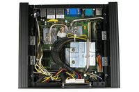 ????[泡泡網(wǎng)主板頻道5月5日]SolidLogic 這款 Mini-ITX 機器走的并不是白凈書生路線,也不算時尚型男風格,而是超實用路線。設(shè)計理念感覺起來蠻符合邏輯的:零件不吹風,就裝大散熱鰭片;那么要讓計算機不吹風,將它整臺裝在巨型散熱鰭片里就對了! ??? GS-L10 主要由兩大部份組成:Serener 的機款( 型號正是 GS-L10 ),加上微星的 MS-9818 主機板。處