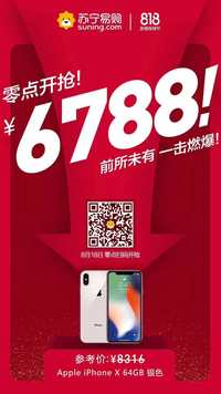 張翠嫄 · 2018-08-20 16:15 - 818爆發(fā)日,蘇寧手機iPhone X低至6788元!