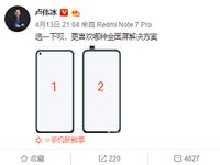 4月13日消息,盧偉冰在微博中發(fā)文,稱“選一下唄,更喜歡哪種全面屏解決方案”,而下圖中的第二個就是升降式攝像頭設(shè)計,對此,網(wǎng)友紛紛回復(fù)“2”。