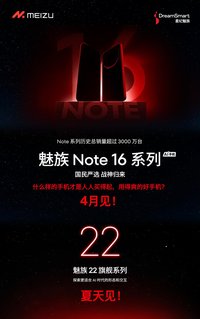 李軍工 · 2025-03-30 11:41 - 國(guó)民嚴(yán)選魅族 Note 16 系列 4 月發(fā)布,現(xiàn)已開啟預(yù)約