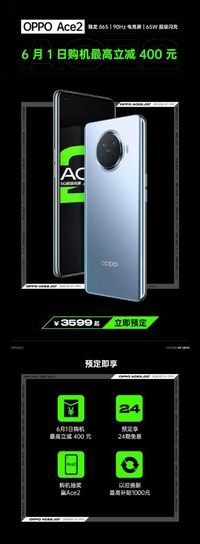 618年中大促已經(jīng)打響,各大手機(jī)廠商摩拳擦掌蓄勢(shì)待發(fā),不過在眾多的優(yōu)惠活動(dòng)中,還是OPPO Ace2優(yōu)惠力度更大,OPPO官方宣布,5月25日至5月31日期間,預(yù)定Ace2的用戶可享受多重優(yōu)惠,其中8G+128G預(yù)售期間支付定金立減200元,并發(fā)放200元優(yōu)惠券,預(yù)售到手價(jià)3599元;12GB+256GB版本預(yù)售到手價(jià)4399元,同時(shí)全系享24期免息。