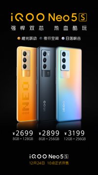 iQOO Neo系列新品手機于12月20日發(fā)布,售價2199元起。其中 iQOO Neo5S將于明日(12月24日)上午10:00在vivo官網(wǎng)、京東、天貓、蘇寧易購、拼多多等渠道正式發(fā)售,iQOO線下專賣店、電競館、及各大授權(quán)門店、vivo體驗店同步開售;iQOO Neo5 SE則將于12月28日10:00正式開售。