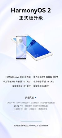 陳彤 · 2021-12-08 09:59 - 再添6款設(shè)備可升級(jí)HarmonyOS 2正式版!其中榮耀平板5等上市已3年