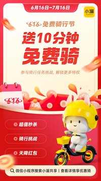 王子 · 2023-06-16 17:08 - 10分鐘免費(fèi)騎行券海量送!小遛上線616免費(fèi)騎行節(jié)