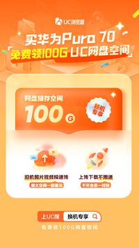 萬里肆 · 2024-04-29 15:29 - UC瀏覽器為華為Pura70用戶帶來專屬100G網(wǎng)盤福利,輕松一鍵備份,換機(jī)不煩惱!