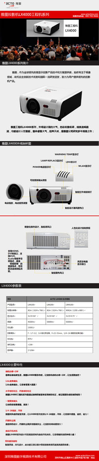 ??? 泡泡網(wǎng)投影機(jī)頻道5月3日 雅圖在剛剛發(fā)布反射式超短焦RAC系列投影機(jī)之后,最新的LX4000系列工程投影機(jī)也將于近期上市。據(jù)悉,這一系列工程機(jī)外觀簡(jiǎn)潔、色彩優(yōu)雅、功能完備且性能出色,適用于大中型商務(wù)會(huì)議及小型階梯教室,將成為工程投影機(jī)市場(chǎng)上的又一亮點(diǎn)。雅圖致力于通過(guò)LX4000系列工程機(jī)的上市,讓客戶感受到雅圖一直在做符合市場(chǎng)發(fā)展趨勢(shì)的產(chǎn)品。