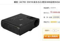 ??? 泡泡網(wǎng)投影機(jī)頻道4月11日 ● 產(chǎn)品型號(hào):雅圖 DS116 (報(bào)價(jià) 參數(shù) 圖片 評(píng)論 ) ● 產(chǎn)品現(xiàn)價(jià):1999元 ● 購買鏈接:【京東商城】 ● 編輯點(diǎn)評(píng):雅圖DS116是一款入門級(jí)商娛投影機(jī),采用DLP投影技術(shù),專為現(xiàn)代商務(wù)辦公、教學(xué)及家庭使用設(shè)計(jì),整機(jī)重量僅為2.5公斤,有著不錯(cuò)的便攜性。作為一款經(jīng)濟(jì)型投影機(jī),DS116具備3000流明高亮度與SVGA分辨率,并配備常用的輸入